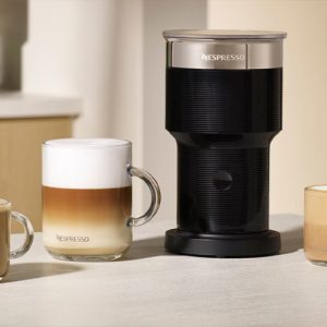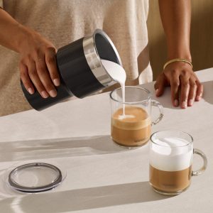 Un poco más de espuma de leche puede marcar la diferencia con el Aeroccino XL de Nespresso. Tanto si vas a preparar un Macchiato largo y cremoso como tres deliciosos Cappuccinos, este espumador de leche prepara toda la espuma que necesitas de una sola vez. Espuma de leche caliente o fría, un gran volumen de leche caliente… Todas las recetas de café que puedas imaginar están a tu alcance con solo pulsar un botón. Y cuando hayas terminado, solo tienes que meterlo en el lavavajillas. Porque todos merecemos de vez en cuando un capricho especial.
