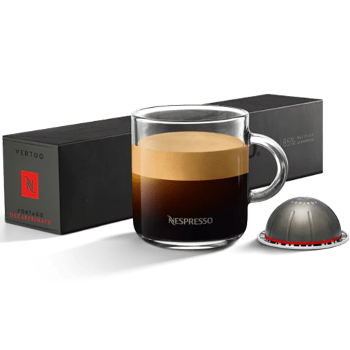Fortado Decaffeinato no pierde ni un ápice de su fuerza aromática al descafeinarse. Las notas de cacao y roble siguen dominando en esta mezcla intensa y memorable de Arábica y Robusta.